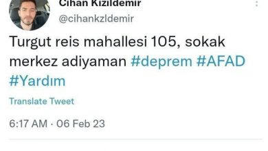 یک شهروند ترکیه که در زلزله امروز از زیر آوار توییت زده و آدرس خود را اعلام کرده تا نجاتش بدن!