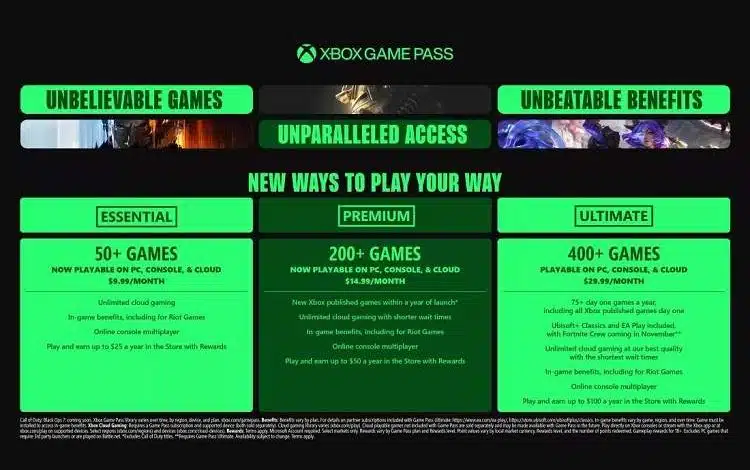 بر اساس طرح‌های جدید، سرویس «گیم پس آلتیمیت» با افزایش ۵۰ درصدی، از ۱۹/۹۹ دلار به ۲۹/۹۹ دلار در ماه رسیده است. همچنین، اشتراک PC Game Pass نیز از ۱۱/۹۹ دلار به ۱۶/۴۹ دلار افزایش یافته است. دو سطح دیگر یعنی Game Pass Essential و Game Pass Standard با قیمت‌های ۹/۹۹ و ۱۴/۹۹ دلار ثابت مانده‌اند.