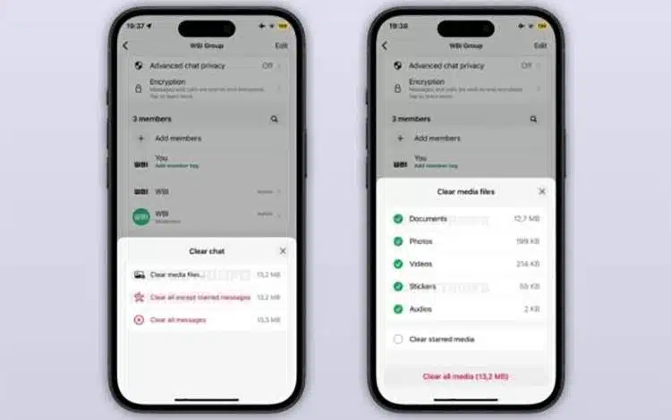 در این به‌روزرسانی، کاربران می‌توانند هنگام حذف یک گفت‌وگو، انتخاب کنند کدام بخش‌ها از جمله پیام‌ها یا فایل‌های چندرسانه‌ای حفظ یا حذف شوند.