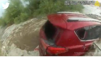 بیرون کشیدن راننده از خودروی در حال غرق شدن + فیلم