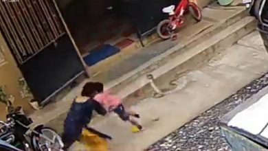 نجات کودک از حمله مار سمی توسط مادرش + فیلم